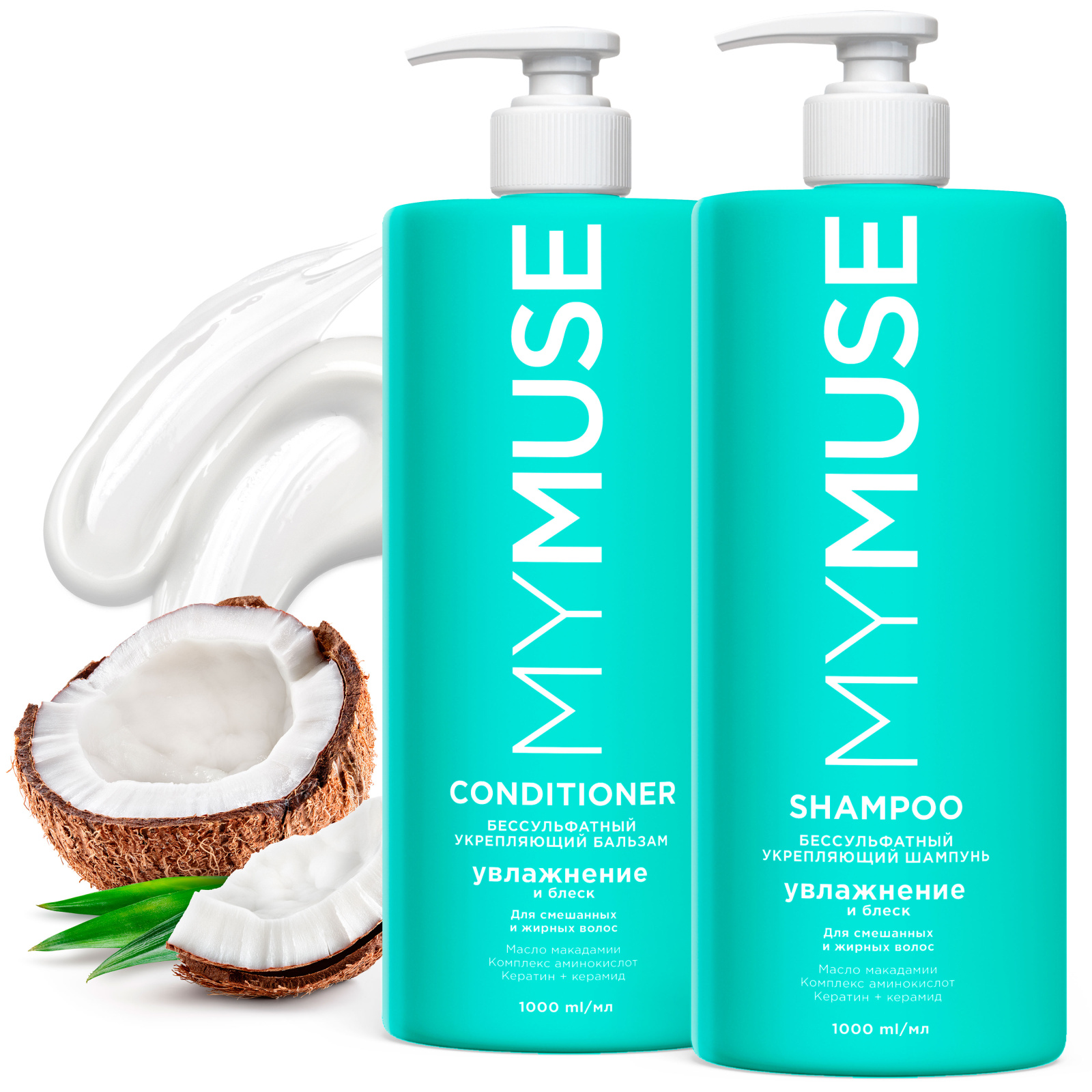 Шампунь для волос MY MUSE 1л, беcсульфатный укрепляющий шампунь